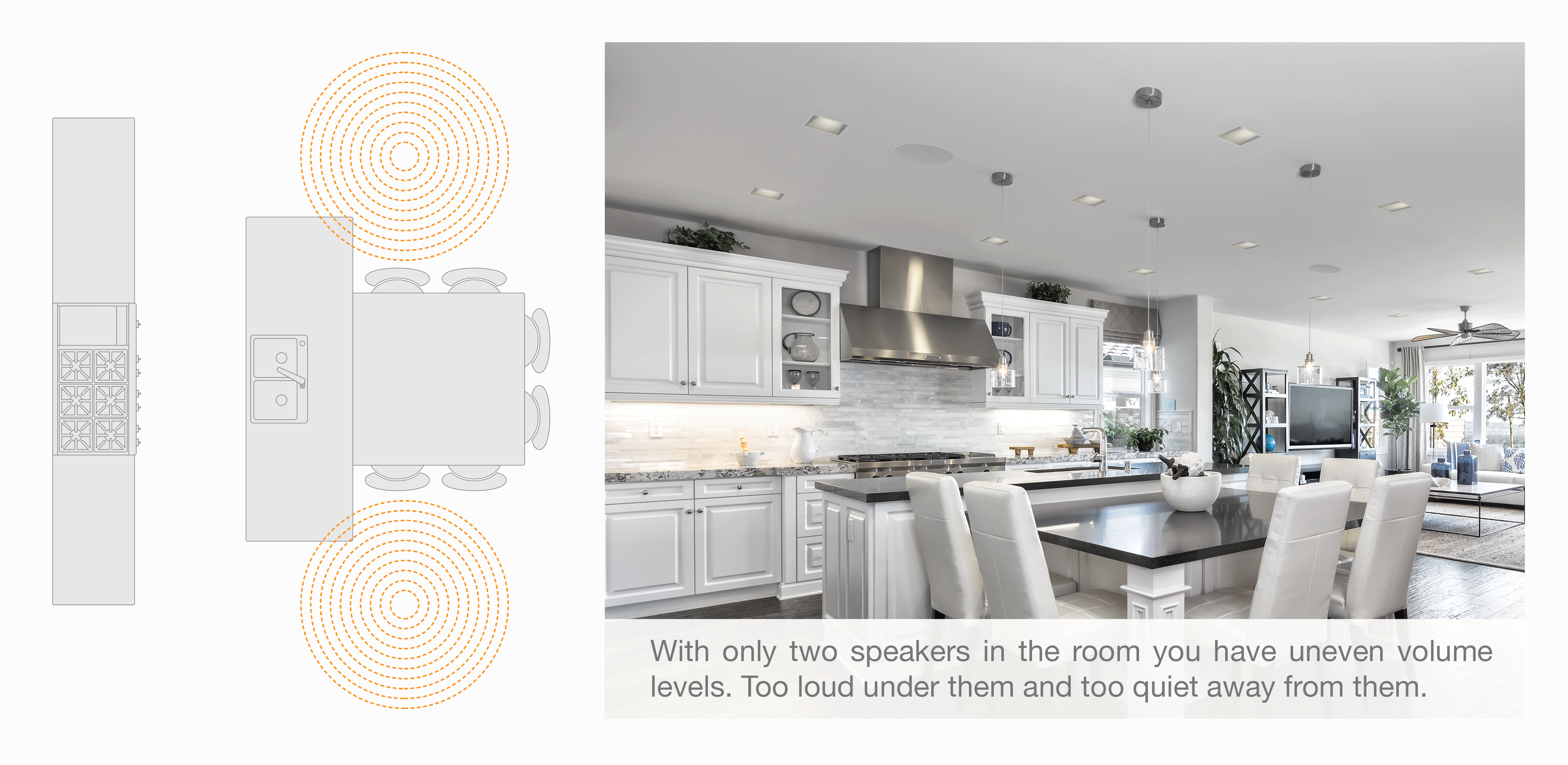 Three shapes and sizes provide the flexibility to complement the interior design and architecture cues of the space. With a speaker to suit any application, the same award winning aesthetic can be achieved in every room of the house.