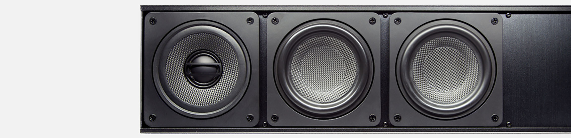 Each of the three speaker chambers feature a coaxial 1” powder-coated aluminum tweeter and a 4” laminated Kevlar and Nomex midrange, paired with dual 4 ½” laminated Kevlar and Nomex woofers. This combination delivers crystal clear vocals and defined channel separation, creating sound which is both natural and sonically accurate.
