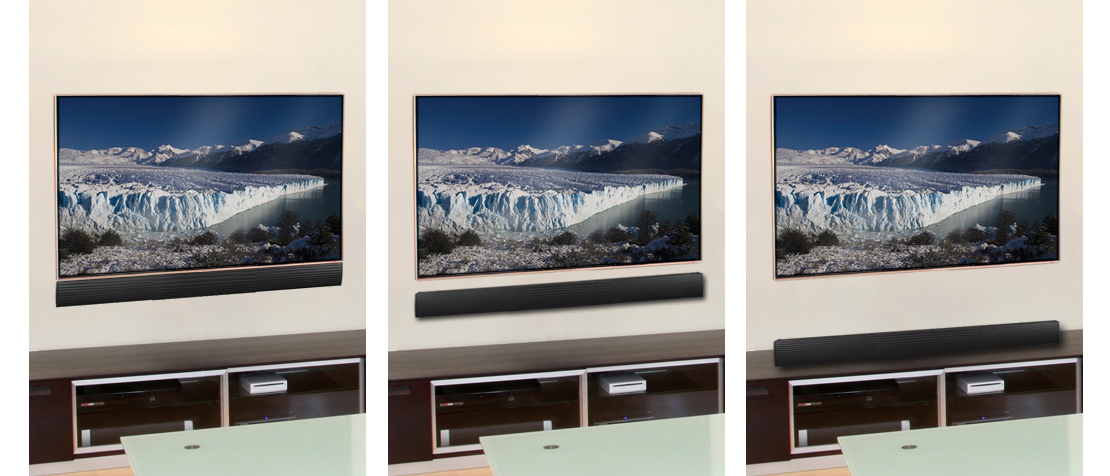 Coperto Solution Corporation Soundbars feature an exclusive patent pending design that allows them to be adjusted to perfectly match the width of any display between 50" and 80". This feature also allows Coperto Solution Corporation Soundbars to be re-adjusted to match future display upgrades.